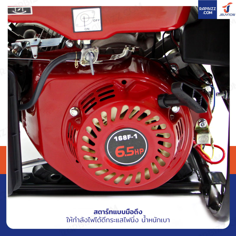 - สตาร์ทแบบมือดึง ให้กำลังไฟได้ดีกระแสไฟนิ่ง น้ำหนักเบา