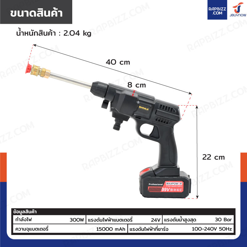 BERALA ปืนฉีดน้ำ ปืนอัดฉีดไร้สาย พร้อมแบตเตอรี่ BL-6311