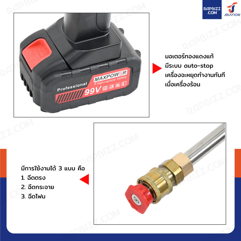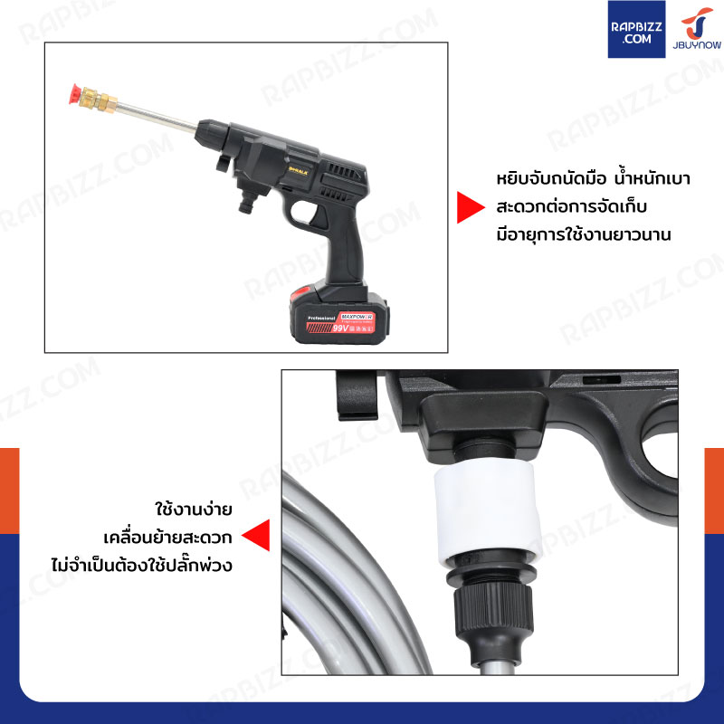- ใช้ทำความสะอาดง่ายขึ้น สามารถฉีดน้ำในระยะทางไกลได้