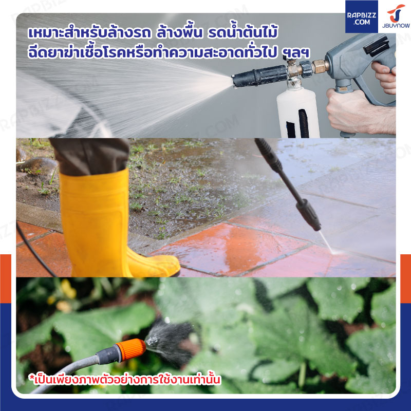 - เหมาะสำหรับล้างรถ ล้างพื้น รดน้ำต้นไม้ ฉีดยาฆ่าเชื้อโรคหรือทำความสะอาดทั่วไป ฯลฯ