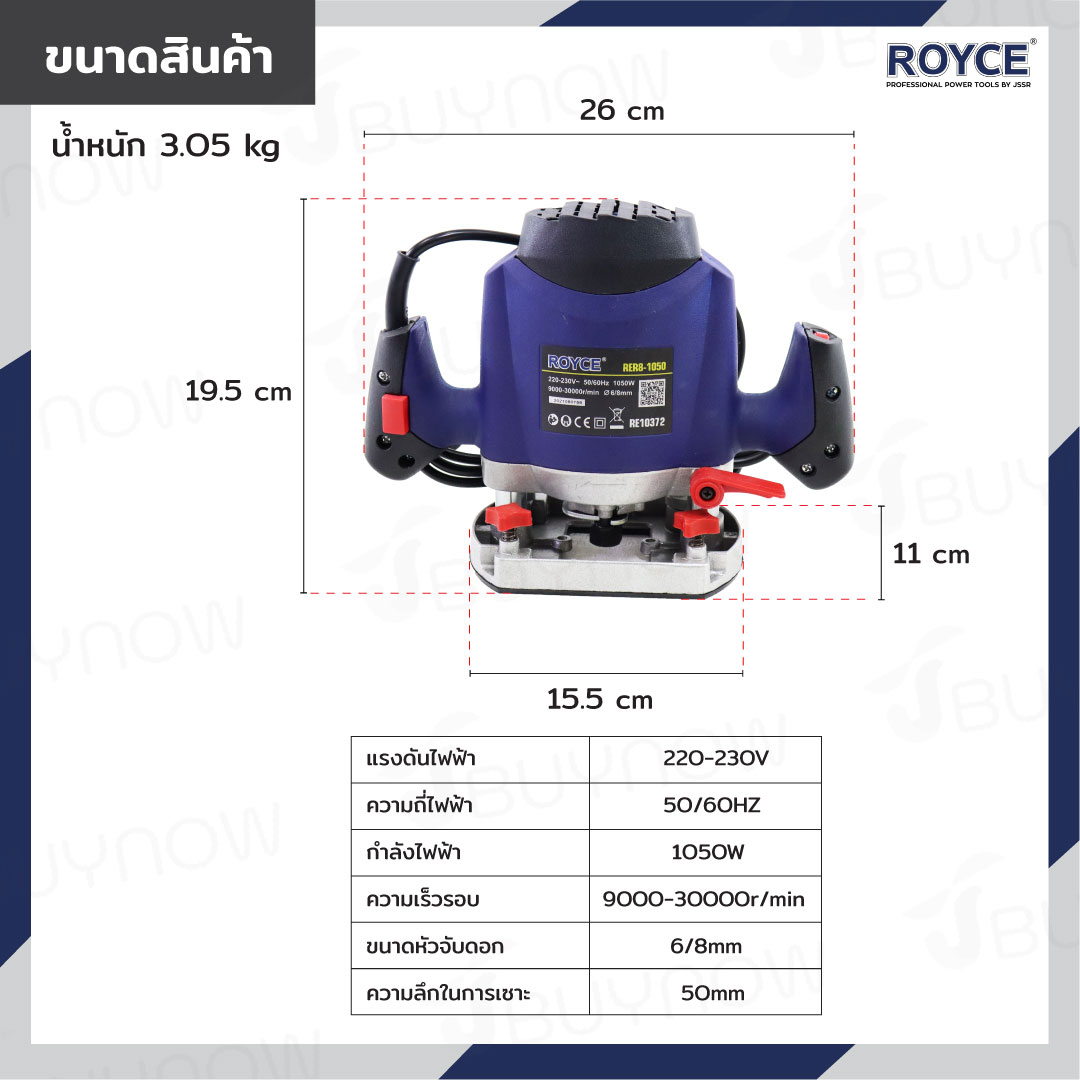 เครื่องเร้าเตอร์ เครื่องเซาะร่องไม้ 6/8MM 1050W JBUYNOW ROYCE RER8-1050