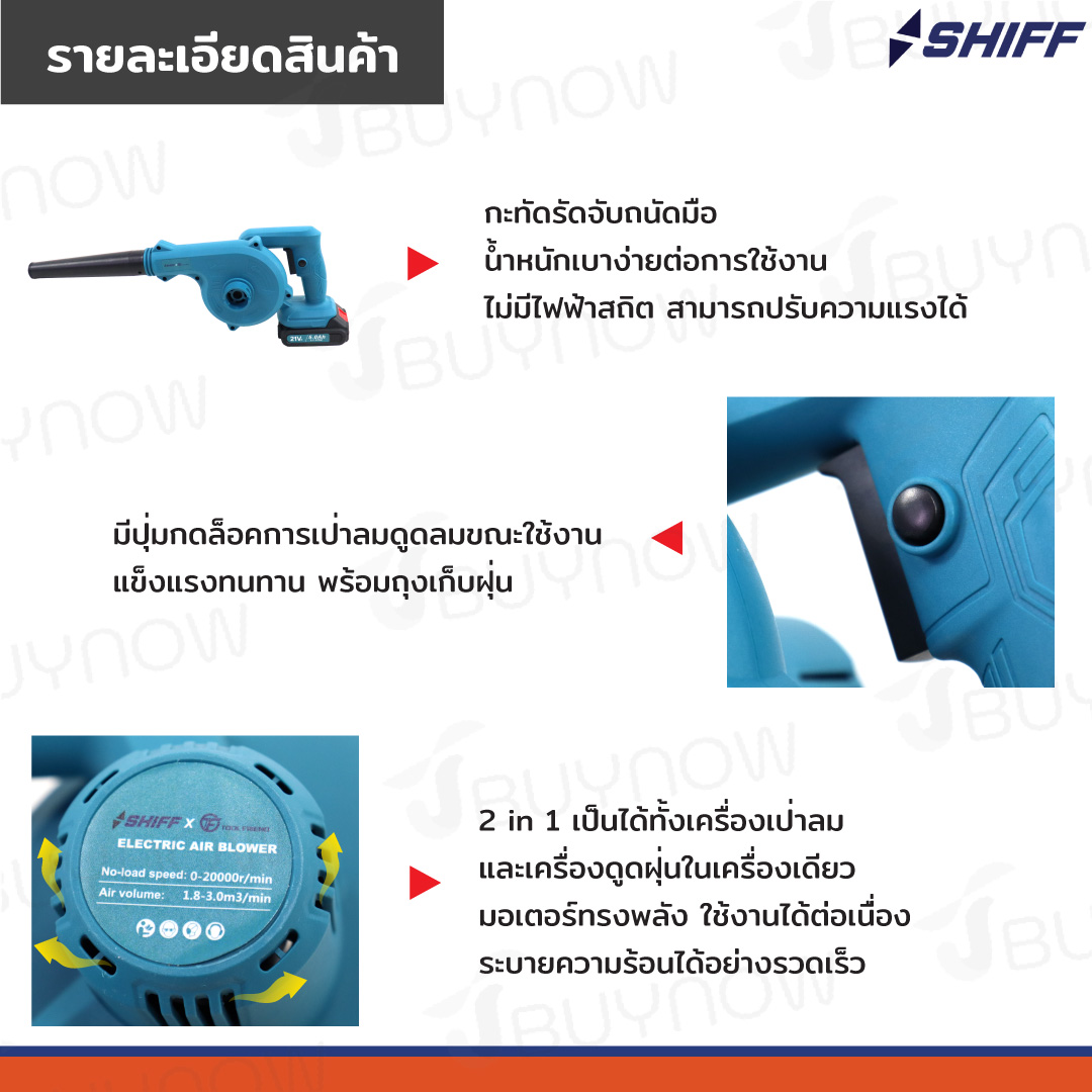 เครื่องเป่าลมไร้สาย 21V ปรับความแรงลมได้ SHIFF JBUYNOW TF-AB02