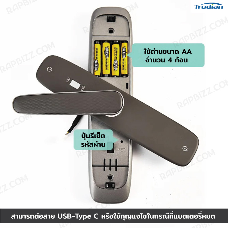 - สามารถต่อสาย USB Type C ในกรณีฉุกเฉินเวลาถ่านหมด
