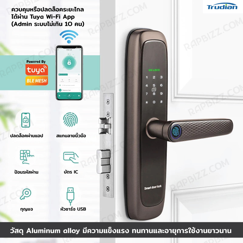 - สามารถปลดล็อคระยะไกลได้ผ่าน Tuya Wi-Fi App