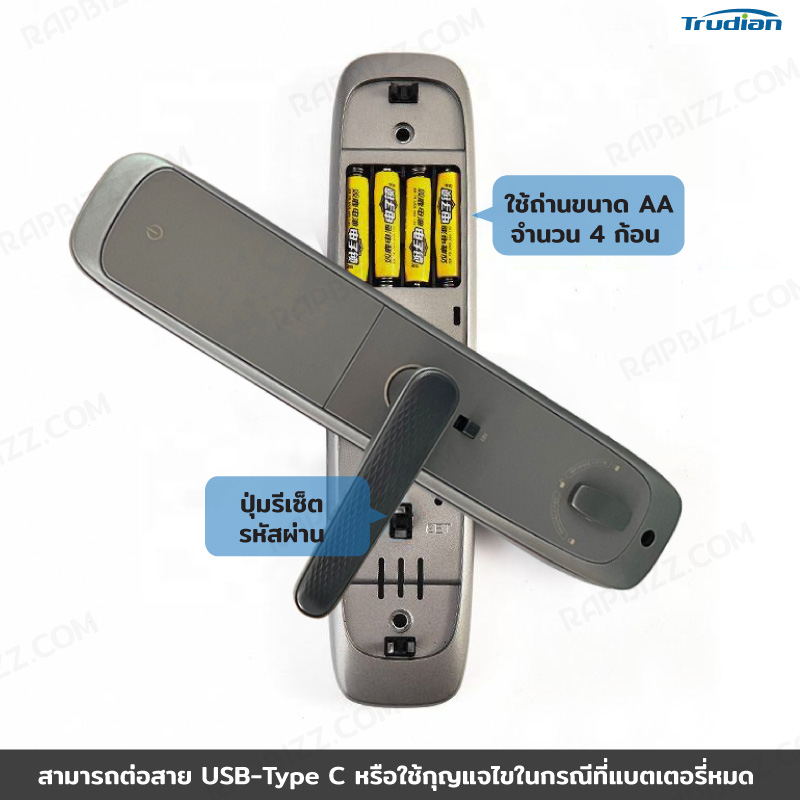 - สามารถต่อสาย USB Type C ในกรณีฉุกเฉินเวลาถ่านหมด