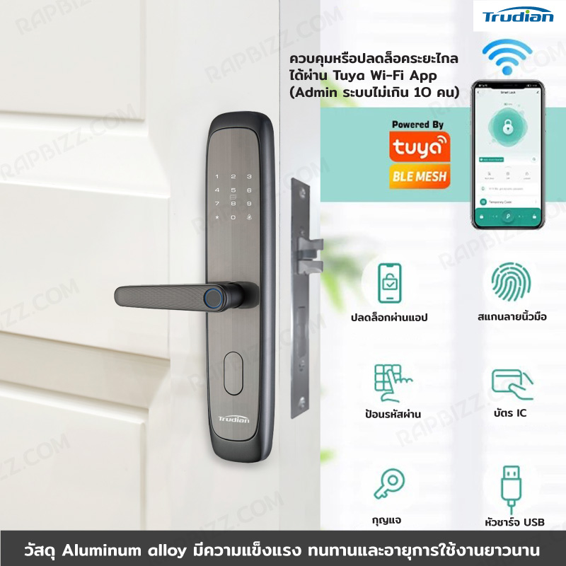 - สามารถควบคุมหรือปลดล็อคระยะไกลได้ผ่าน Tuya Wi-Fi App