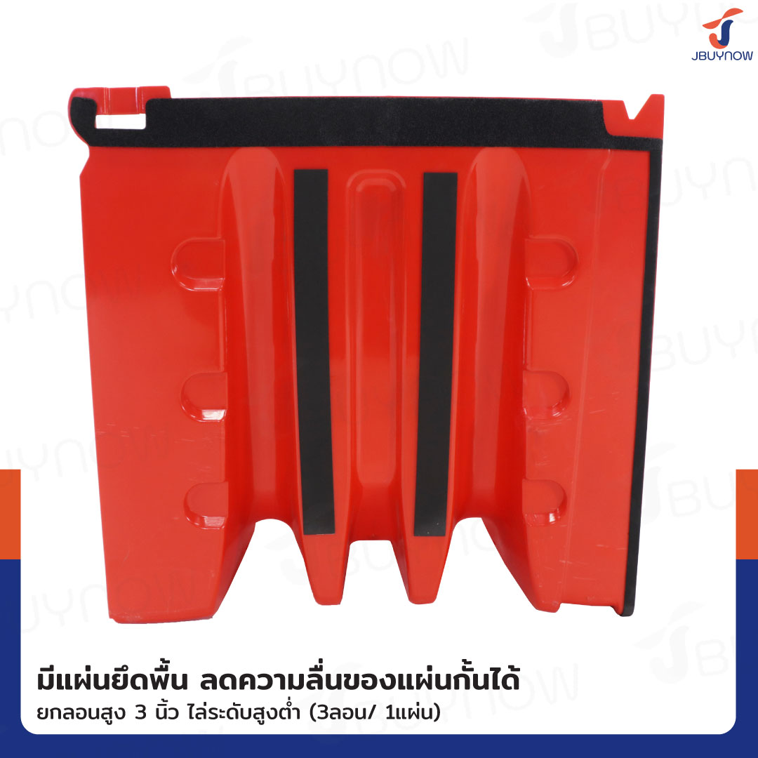 - มีแผ่นยึดพื้น ลดการลื่นของแผ่นกั้น ใช้เวลาในการติดตั้งน้อยเพียงแค่ยกวางเรียงต่อกันไม่ต้องเสียเวลาประกอบ