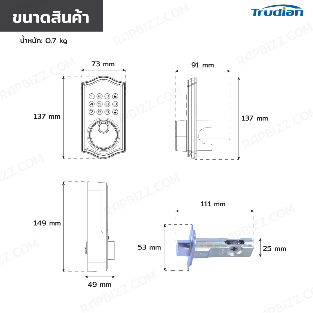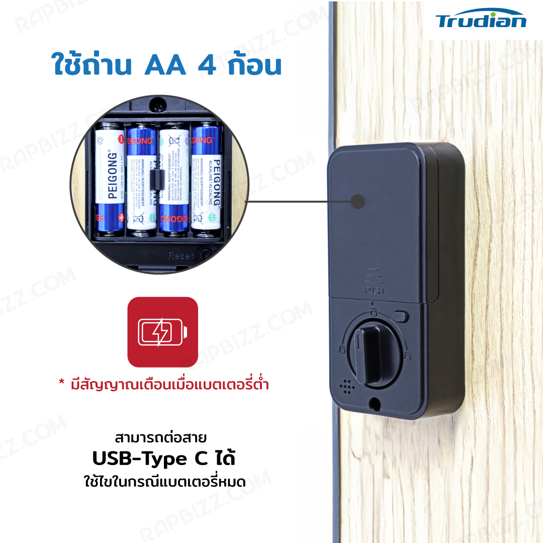- รองรับลายนิ้วมือ 50 ชุด + รหัสผ่าน 100 ชุด