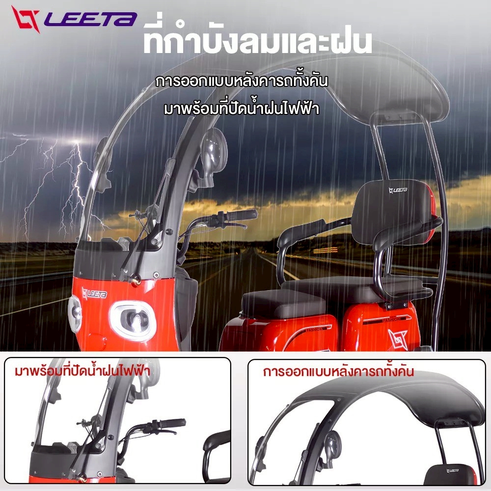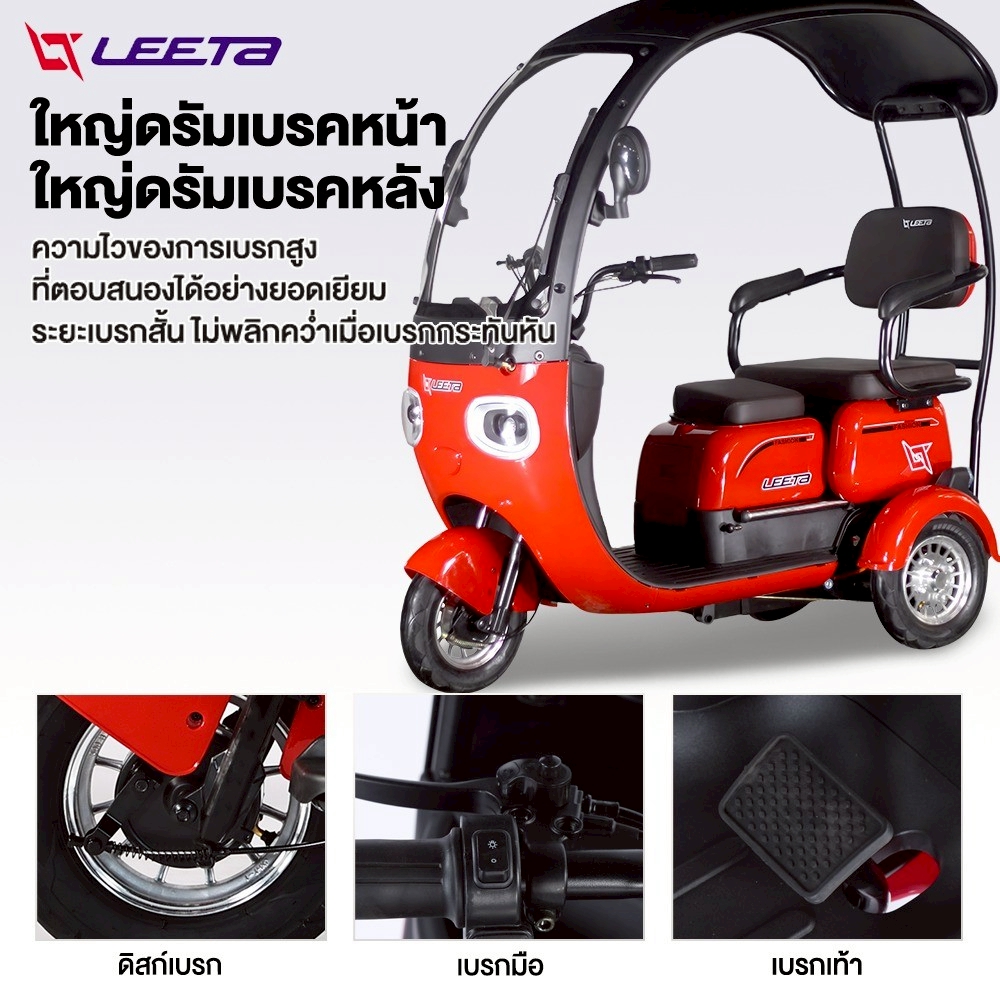 LEETA รถไฟฟ้าผู้ใหญ่ 3 ล้อ รถสามล้อไฟฟ้า แบบมีหลังคา 1000W 48V20AH สีเทา