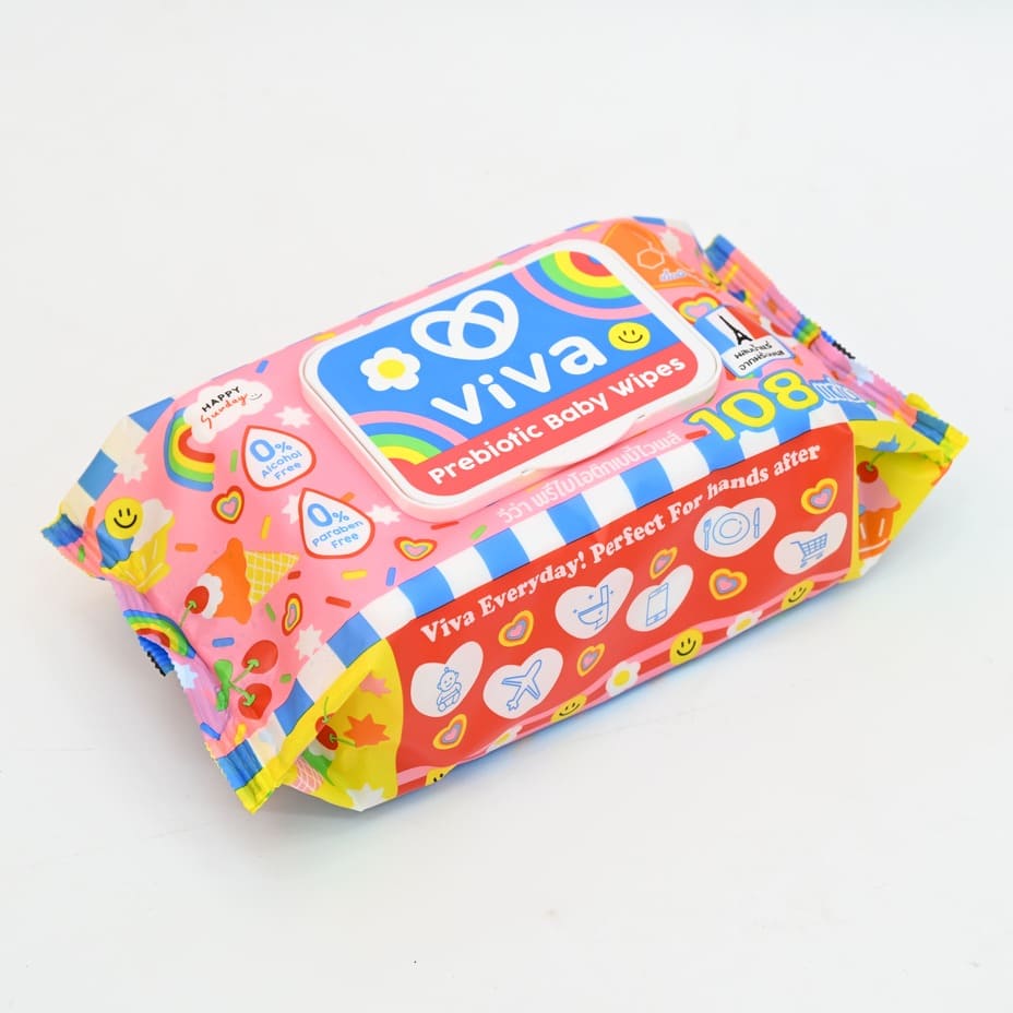ViVa x Happy Sunday ทิชชู่เปียก ผ้าเปียก สูตร Prebiotic Baby Wipes 108 แผ่น