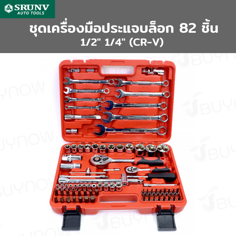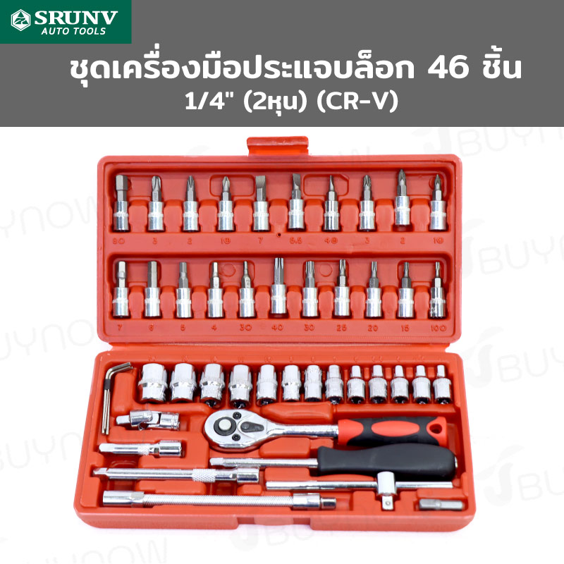 ชุดเครื่องมือ ประแจบล็อก 46 ชิ้น 1/4 นิ้ว (2 หุน) CR-V JBUYNOW SRUNV A1-x04605