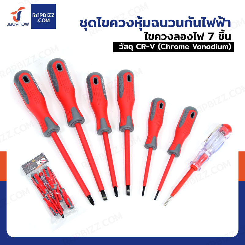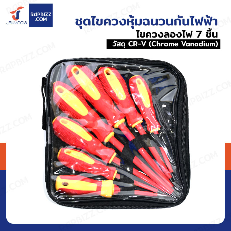 ชุดไขควง หุ้มฉนวนกันไฟฟ้า ไขควงลองไฟ 7 ชิ้น CR-V JBUYNOW 8812