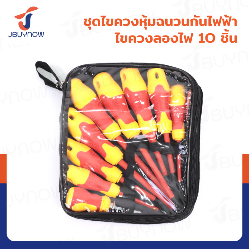 ชุดไขควง หุ้มฉนวนกันไฟฟ้า ไขควงลองไฟ 10 ชิ้น JBUYNOW 2025