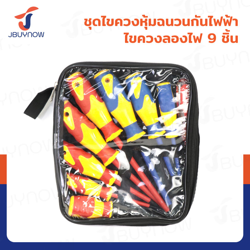 ชุดไขควง หุ้มฉนวนกันไฟฟ้า ไขควงลองไฟ 9 ชิ้น JBUYNOW 2231