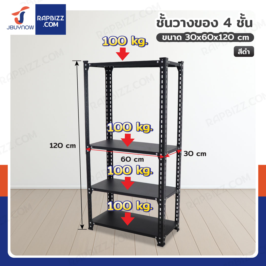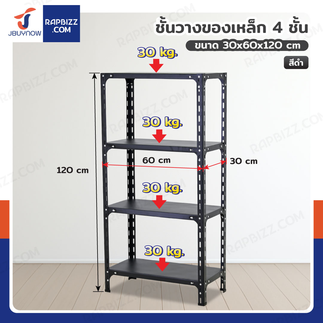 ชั้นวางของเหล็ก 4 ชั้น ชั้นวางอเนกประสงค์ 30x60x120 cm สีดำ