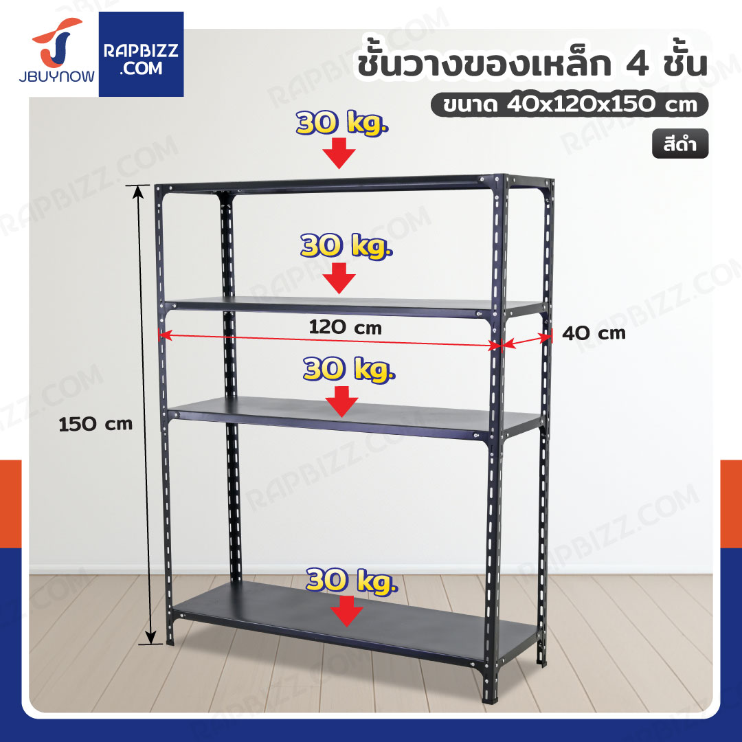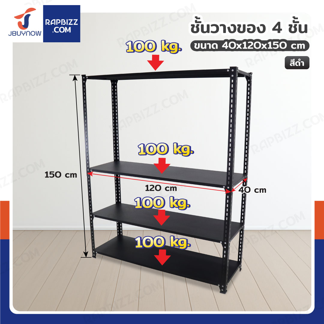 ชั้นวางของเหล็ก 4 ชั้น ชั้นวางอเนกประสงค์ สีดำ 40x120x150 cm