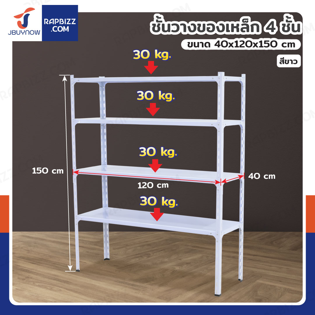ชั้นวางของเหล็ก 4 ชั้น ชั้นวางอเนกประสงค์ สีขาว 40x120x150 cm (ตัวอย่าง)
