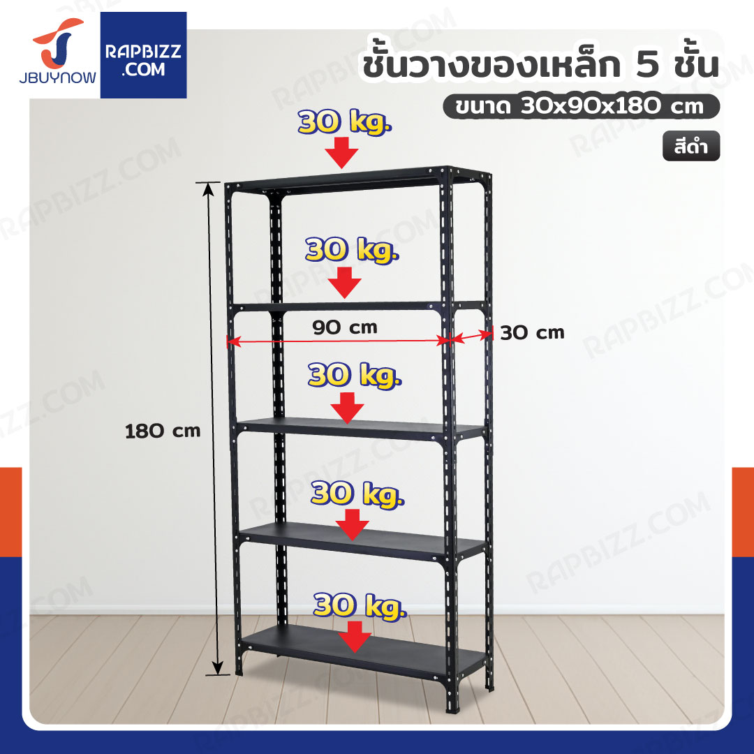 ชั้นวางของเหล็ก 5 ชั้น ชั้นวางอเนกประสงค์ 30x90x180 cm สีดำ
