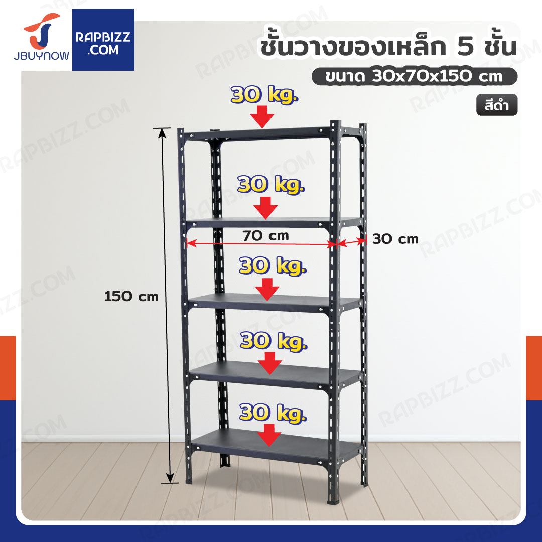 ชั้นวางของเหล็ก 5 ชั้น ชั้นวางอเนกประสงค์ 30x70x150 cm สีดำ