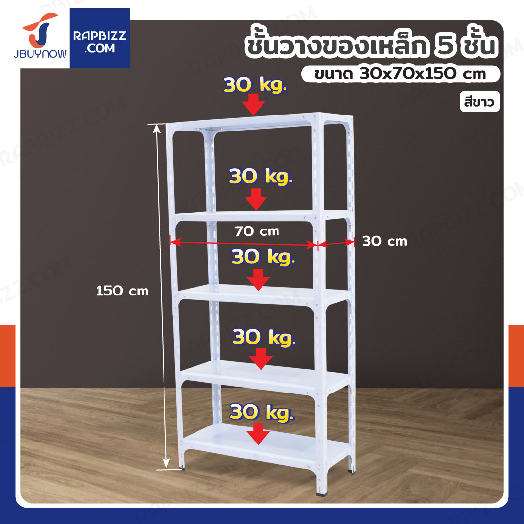 ชั้นวางของเหล็ก 5 ชั้น ชั้นวางอเนกประสงค์ 30x70x150 cm สีขาว