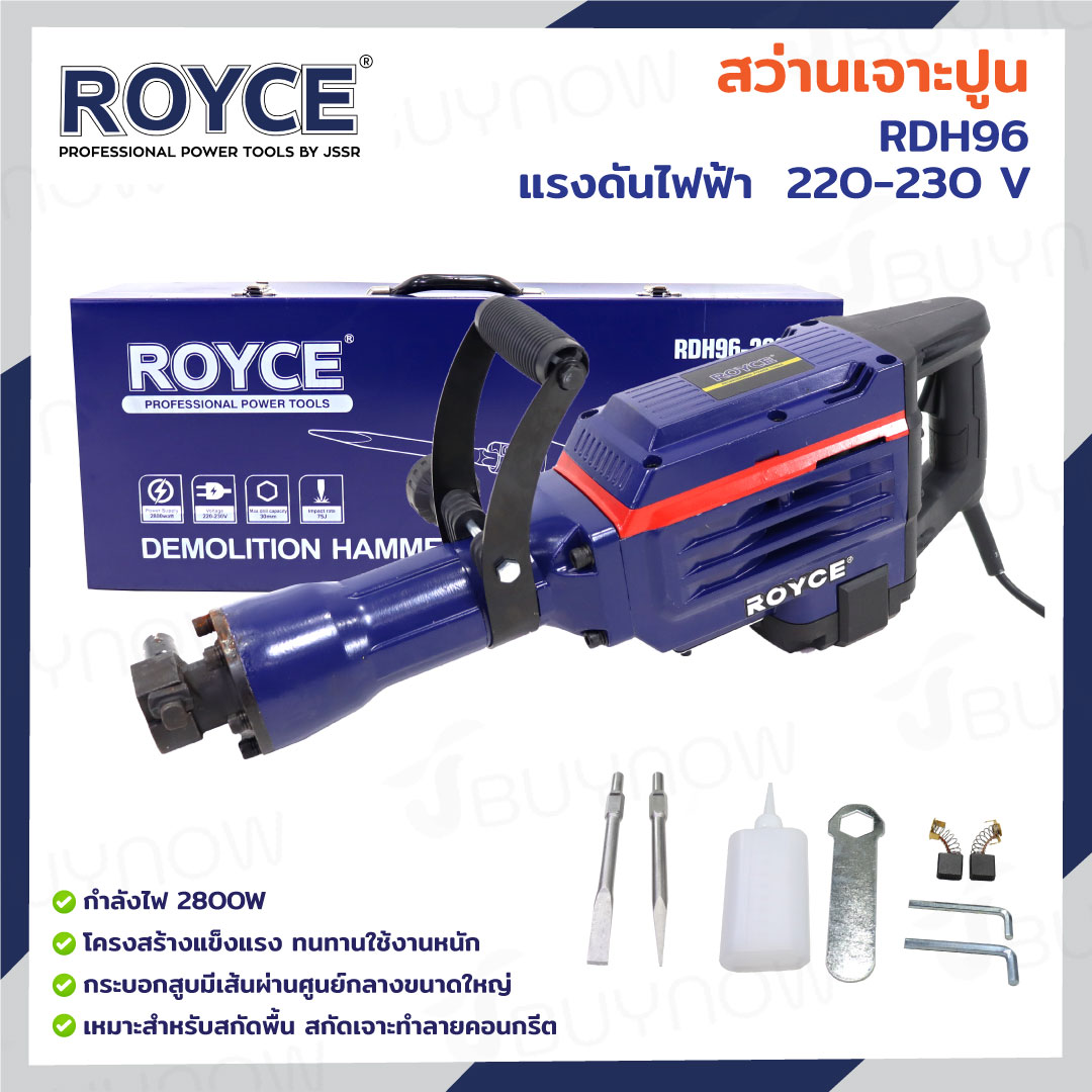 สว่านเจาะปูน เครื่องสกัดไฟฟ้า แย๊ก 30 mm(1-3/16 นิ้ว) 2800W ROYCE RDH-96
