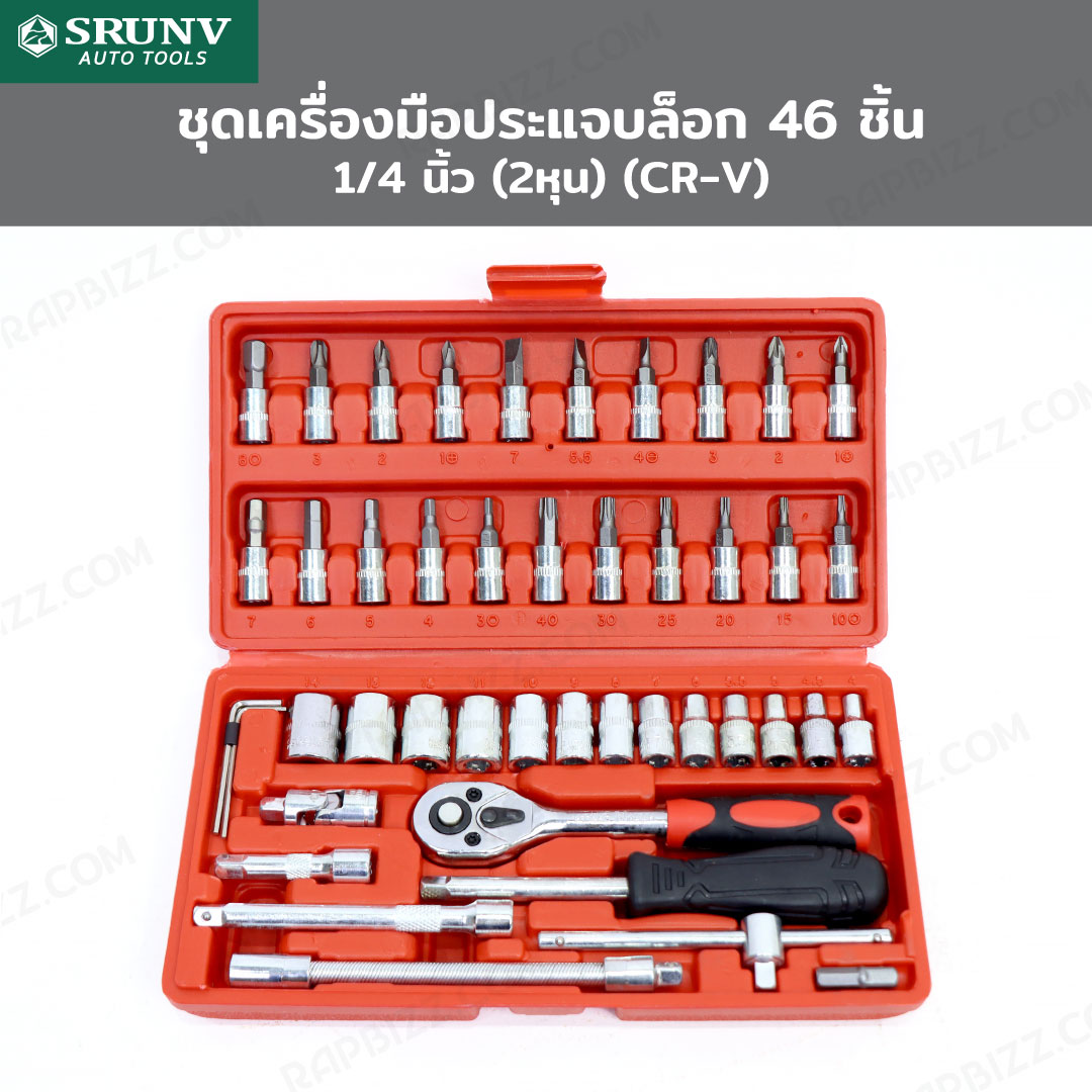 ประแจบล็อก ชุดประแจ ชุดเครื่องมือ 46 ชิ้น 1/4 นิ้ว (2 หุน) CR-V JBUYNOW JBUYNOW SRUNV A1-x04605A