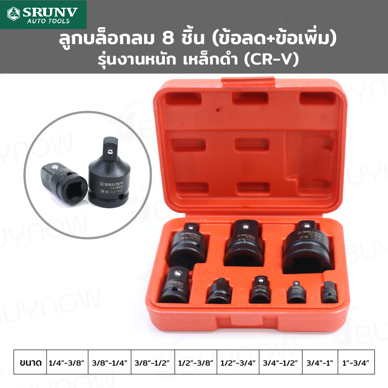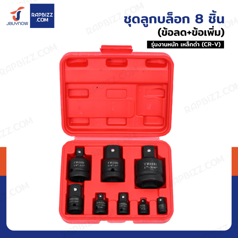 ลูกบล็อกลม 8 ชิ้น (ข้อลด+ข้อเพิ่ม) งานหนัก เหล็ก ดำ CR-V JBUYNOW SRUNV Zx-TZGJ001