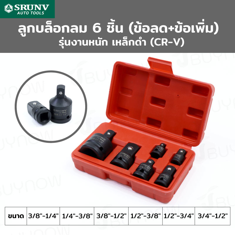 ลูกบล็อกลม 6 ชิ้น (ข้อลด+ข้อเพิ่ม) งานหนัก เหล็ก ดำ CR-VJBUYNOW SRUNV Zx-TZGJ002