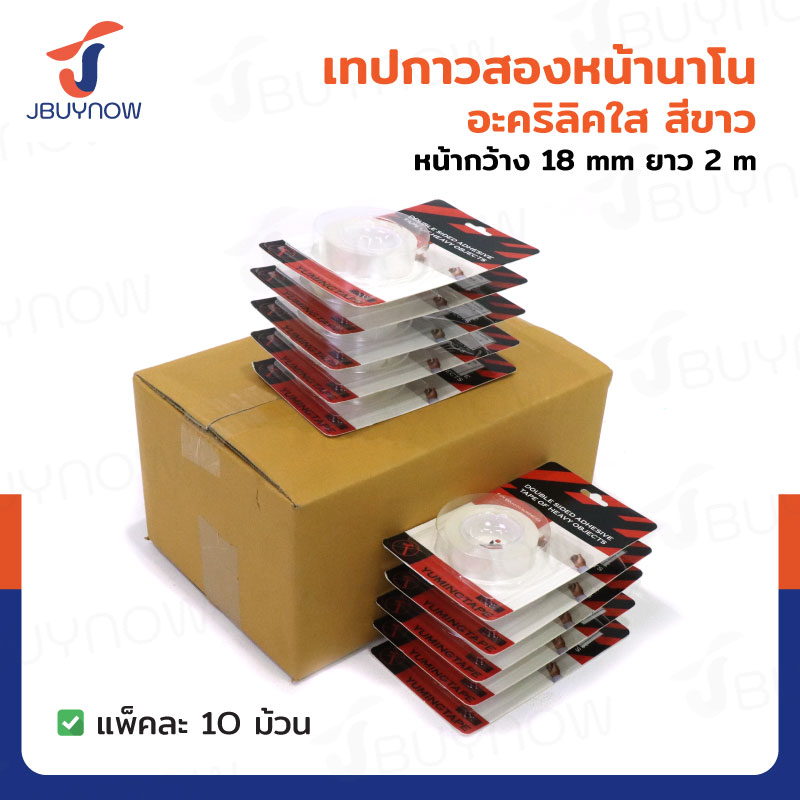 เทปกาวสองหน้านาโน อะคริลิคใส หน้ากว้าง 18MM ยาว 2M สีขาว แพ็คละ 10 ม้วน