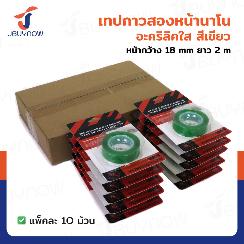 เทปกาวสองหน้านาโน อะคริลิคใส หน้ากว้าง 18MM ยาว 2M สีเขียว แพ็คละ 10 ม้วน