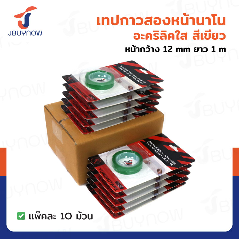 เทปกาวสองหน้านาโน อะคริลิคใส หน้ากว้าง 12MM ยาว 1M สีเขียว แพ็คละ 10 ม้วน