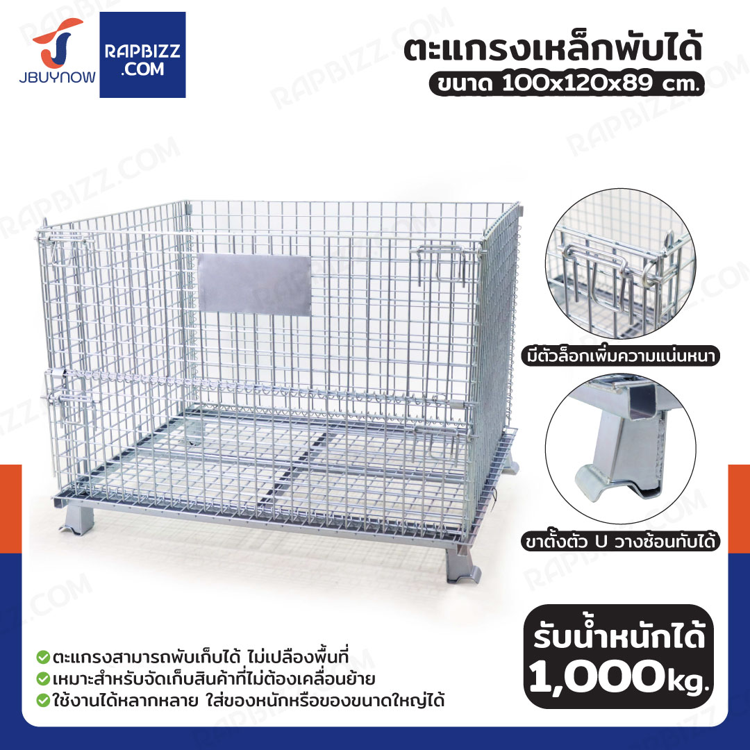 ตะแกรงเหล็กใส่ของ พับได้ 1,000 kg แข็งแรงทรงพลัง ลวดหนา 5.5mm 100x120x89 cm