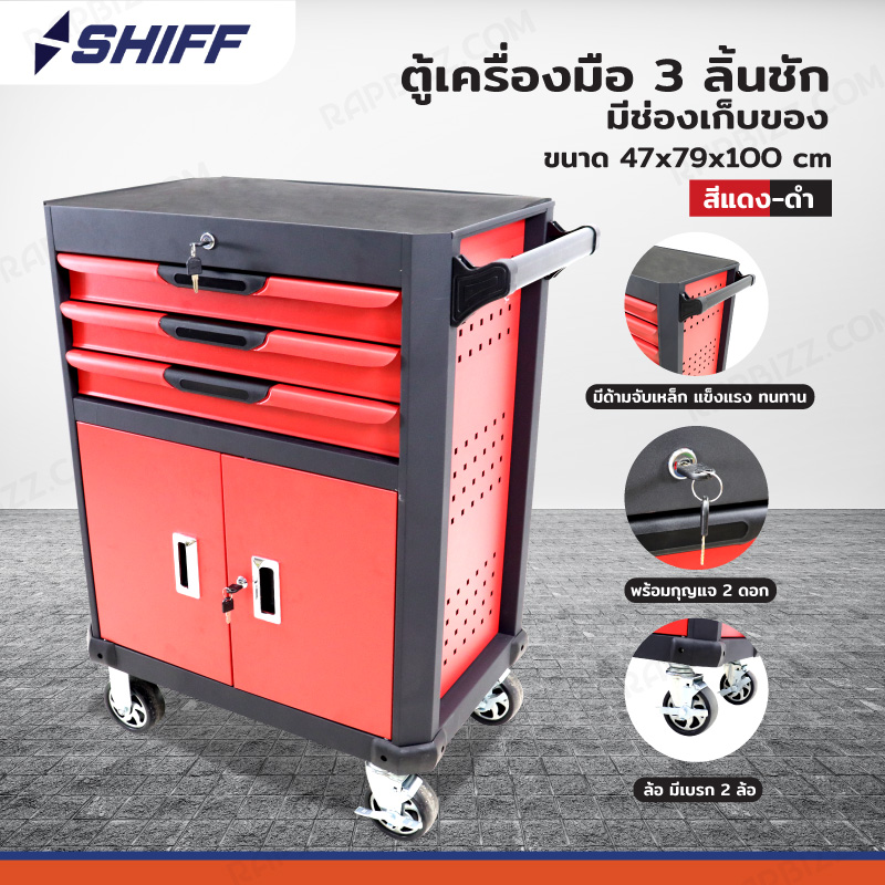 ตู้เครื่องมือ 3 ลิ้นชัก+ช่องเก็บของ 47x79x100 ซม. สีแดง-ดำ