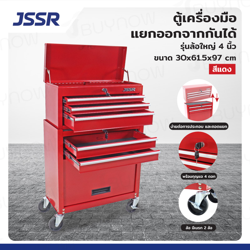 ตู้เครื่องมือ แยกออกจากกันได้ 30x61.5x97 cm.สีแดง รุ่นล้อใหญ่ 4 นิ้ว JBUYNOW JSSR