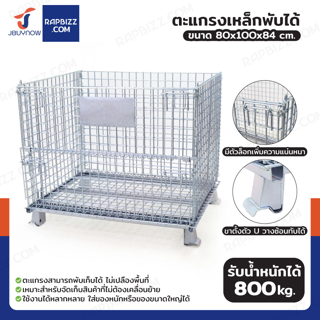 ตะแกรงเหล็กใส่ของ พับได้ 800 kg แข็งแรงทรงพลัง ลวดหนา 4.8mm 80x100x84 cm