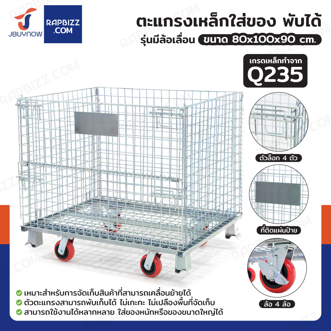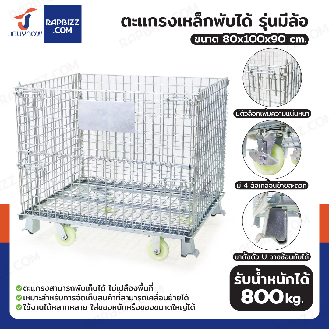 ตะแกรงเหล็กใส่ของ พับได้ 800 kg แข็งแรงทรงพลัง ลวดหนา 4.8mm 80x100x90 cm รุ่นมีล้อ