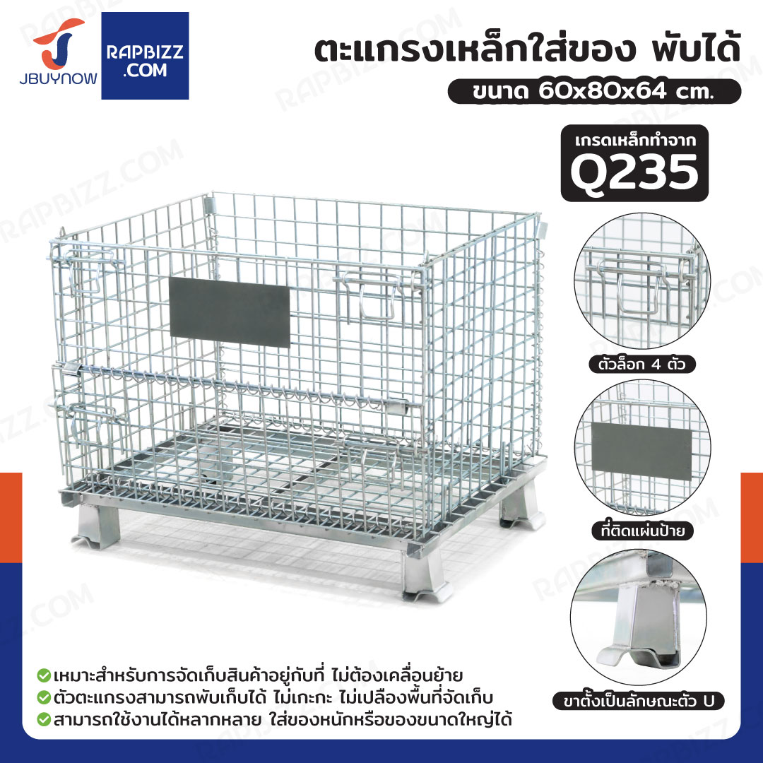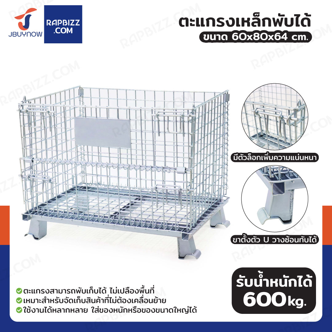 ตะแกรงเหล็กใส่ของ พับได้ 600 kg แข็งแรงทรงพลัง ลวดหนา 4.8mm 60x80x64 cm