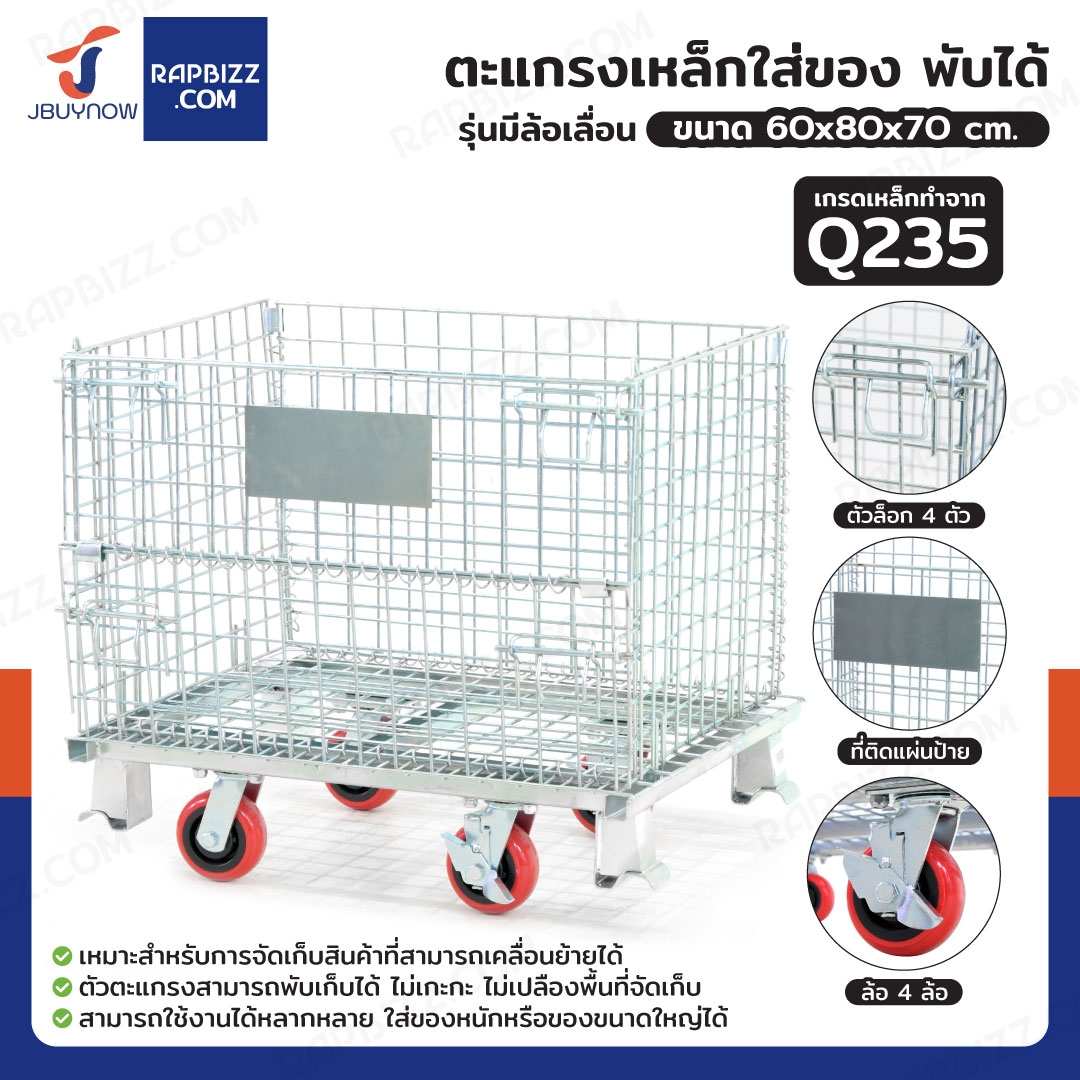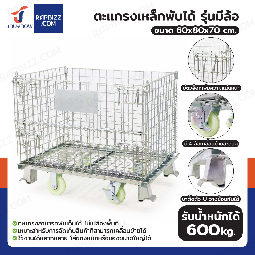 ตะแกรงเหล็กใส่ของ พับได้ 600 kg แข็งแรงทรงพลัง ลวดหนา 4.8mm 60x80x70 cm รุ่นมีล้อ