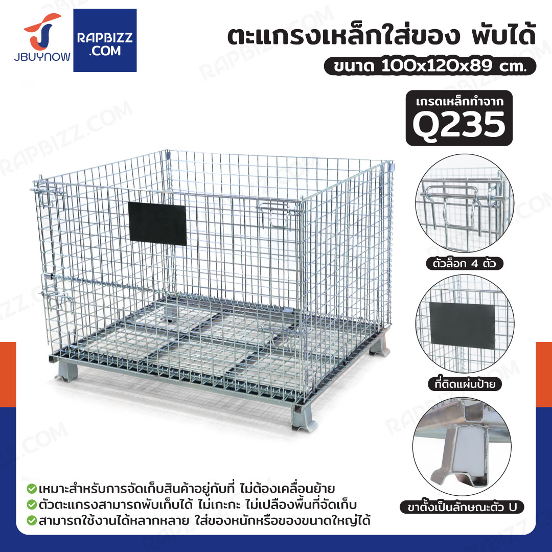 ตะแกรงเหล็กใส่ของ พับได้ 800 kg แข็งแรงทรงพลัง ลวดหนา 4.8mm 100x120x89 cm