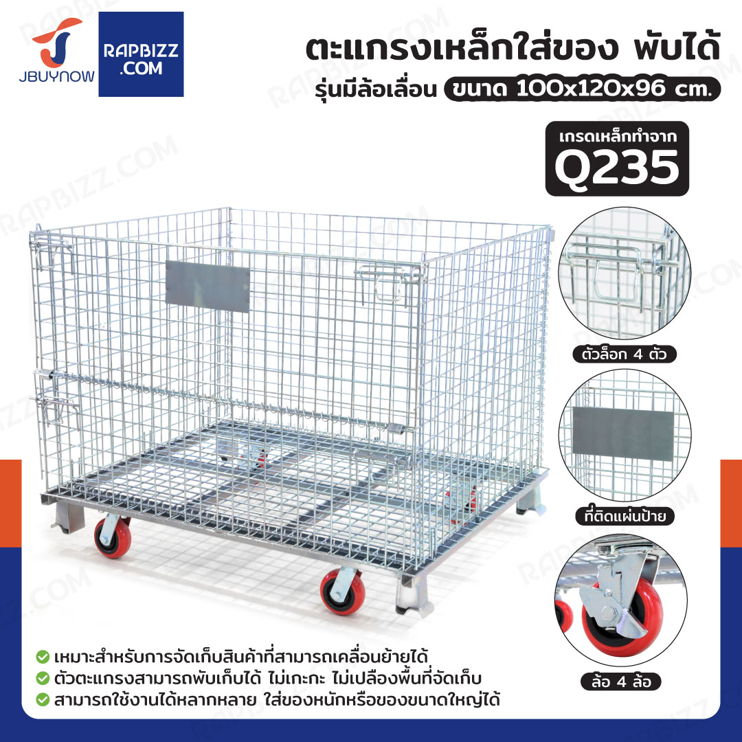 ตะแกรงเหล็กใส่ของ พับได้ 800 kg แข็งแรงทรงพลัง ลวดหนา 4.8mm 100x120x96 cm รุ่นมีล้อ
