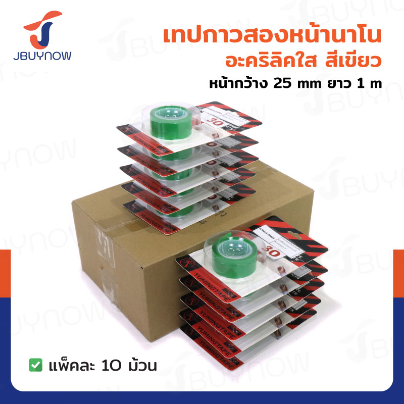เทปกาวสองหน้านาโน อะคริลิคใส หน้ากว้าง 25MM ยาว 1M สีเขียว แพ็คละ 10 ม้วน