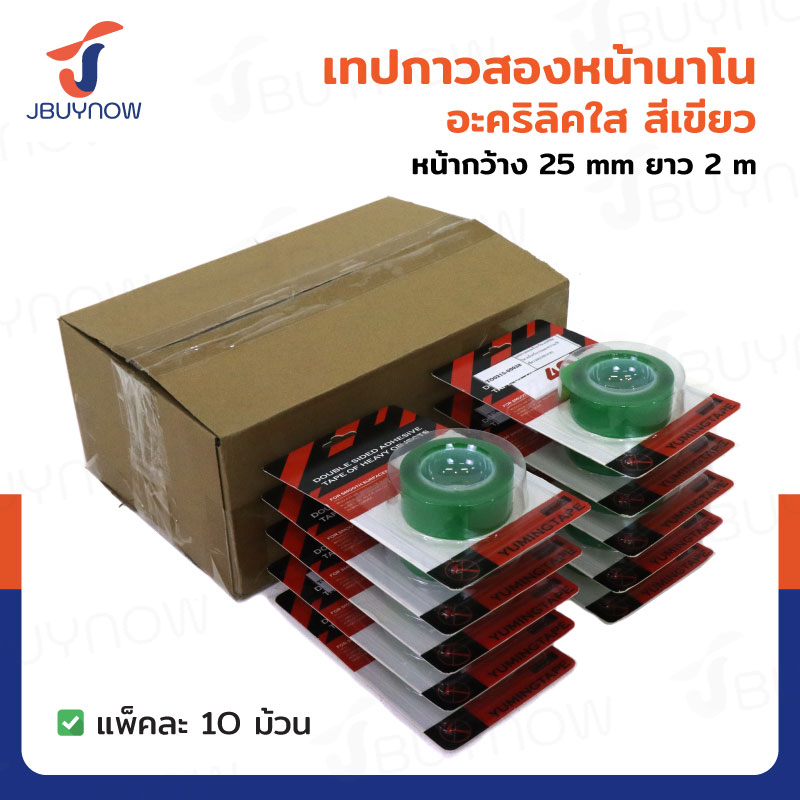 เทปกาวสองหน้านาโน อะคริลิคใส หน้ากว้าง 25MM ยาว 2M สีเขียว แพ็คละ 10 ม้วน