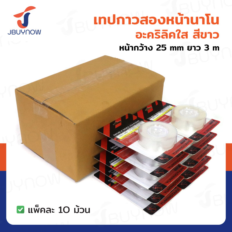เทปกาวสองหน้านาโน อะคริลิคใส หน้ากว้าง 25MM ยาว 3M สีขาว แพ็คละ 10 ม้วน