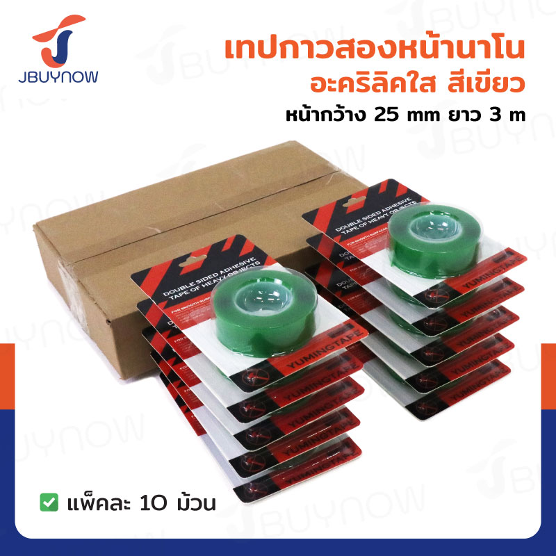 เทปกาวสองหน้านาโน อะคริลิคใส หน้ากว้าง 25MM ยาว 3M สีเขียว แพ็คละ 10 ม้วน