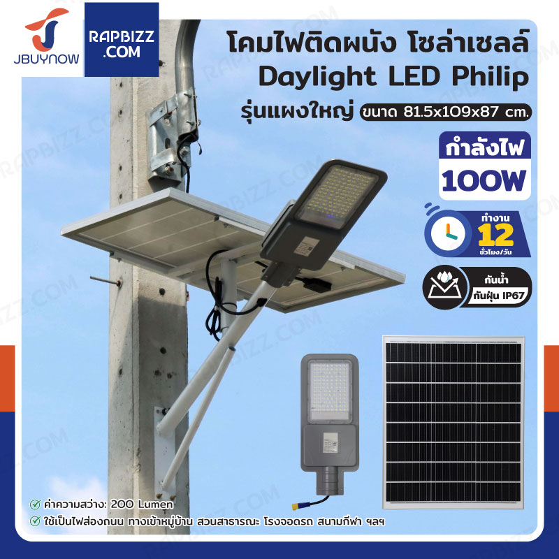 โคมไฟติดผนัง โซล่าเซลล์ 100W Daylight LED Philip รุ่นแผงใหญ่