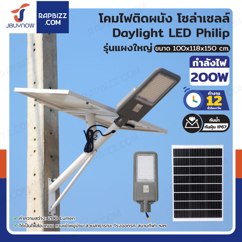 โคมไฟติดผนัง โซล่าเซลล์ 200W Daylight LED Philip รุ่นแผงใหญ่