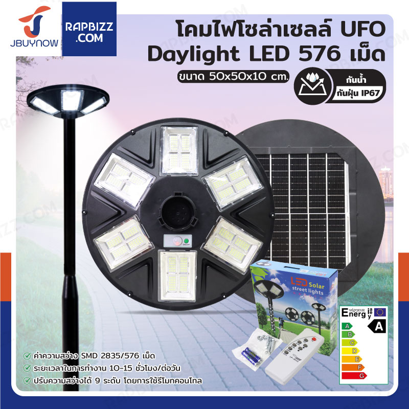 โคมไฟโซล่าเซลล์ UFO Daylight LED 576 เม็ด พลังงานแสงอาทิตย์ IP67