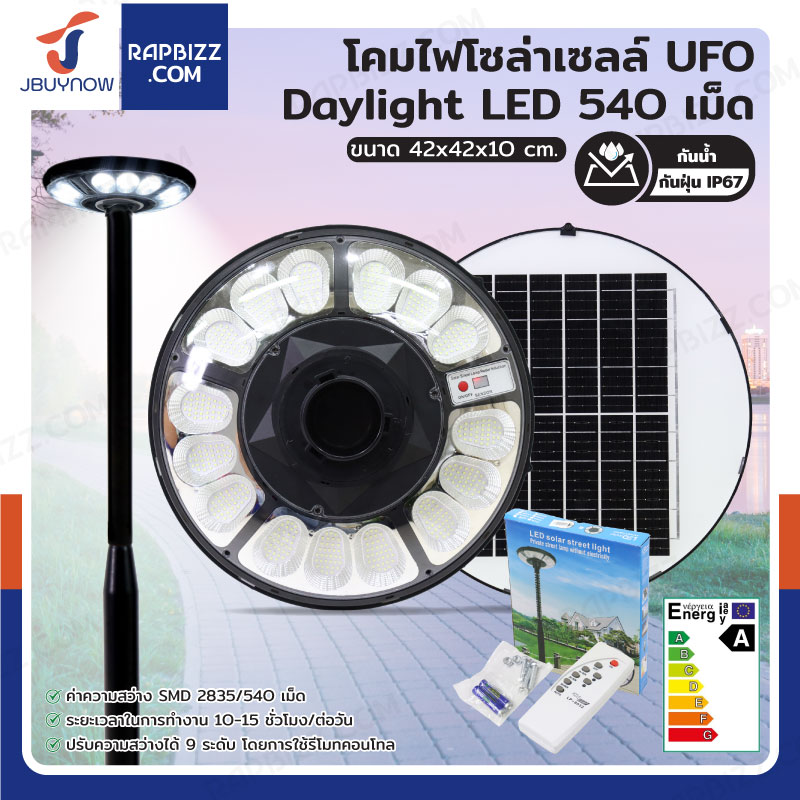โคมไฟโซล่าเซลล์ UFO Daylight LED 540 เม็ด พลังงานแสงอาทิตย์ IP67