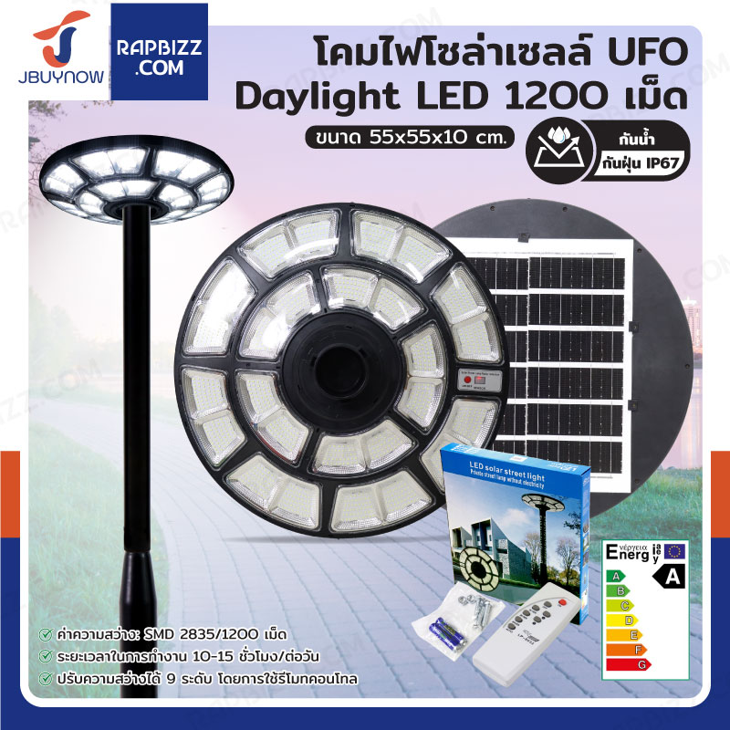โคมไฟโซล่าเซลล์ UFO Daylight LED 1200 เม็ด พลังงานแสงอาทิตย์ IP67
