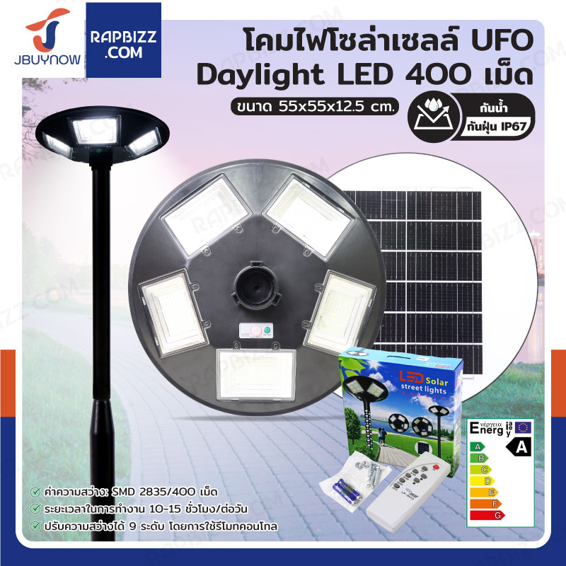 โคมไฟโซล่าเซลล์ UFO Daylight LED 400 เม็ด พลังงานแสงอาทิตย์ IP67